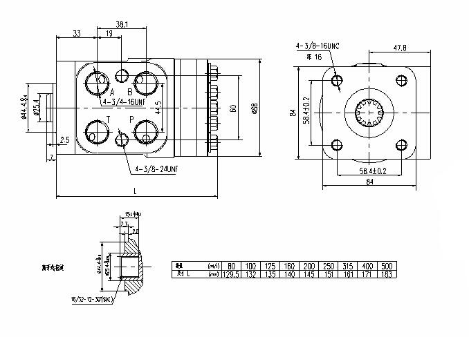 070 S系列 070系列轉(zhuǎn)向器將外聯(lián)法蘭與閥體合 為一體,整機(jī)長度比標(biāo)準(zhǔn)轉(zhuǎn)向器短。 因此結(jié)構(gòu)緊湊,安裝方便。 特點(diǎn) •軸向尺寸短、結(jié)構(gòu)緊湊、安裝方便 •低液壓噪音 •鑄造內(nèi)通道設(shè)計(jì),壓力損失小 •可選擇開芯、閉芯、負(fù)荷傳感回路 主要性能參數(shù) *大入口壓力…………16MPa *大連續(xù)背壓 …………2.1MPa 轉(zhuǎn)向力矩……………1.7~2.5Nm *高系統(tǒng)溫度 ……………93°C 推薦油液清潔度………ISO 19/16 070 S系列外形聯(lián)接尺寸 ![]() |