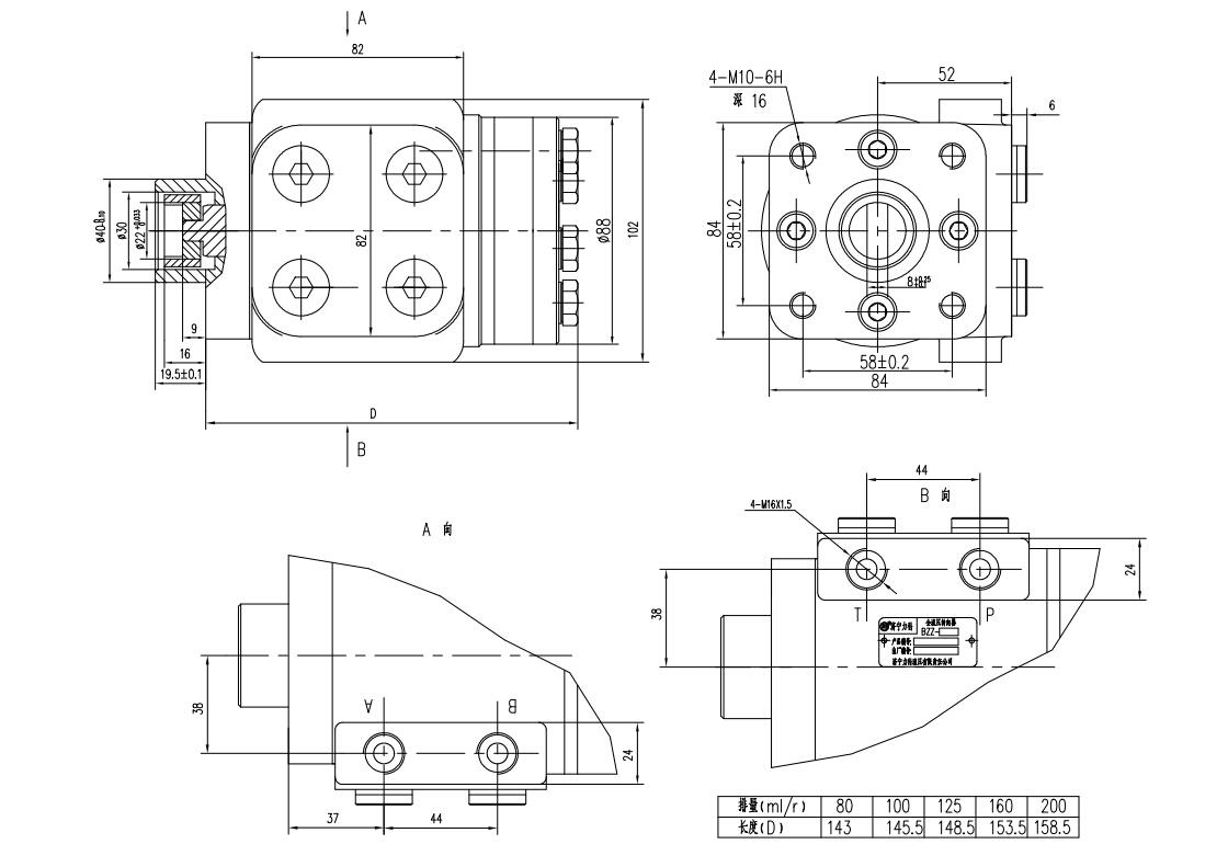 010標(biāo)準(zhǔn)系列 010系列是標(biāo)準(zhǔn)設(shè)計(jì)的轉(zhuǎn)向器,排量從80~500ml/r. 特點(diǎn) •優(yōu)化的控制轉(zhuǎn)閥設(shè)計(jì),性能優(yōu)越 •低液壓噪聲 •鑄造內(nèi)通道設(shè)計(jì),壓力損失小 •三種基本類型:開(kāi)芯、閉芯和負(fù)荷傳感 主要性能參數(shù) *大入口壓力……………16MPa *大連續(xù)背壓……………2.1MPa 轉(zhuǎn)向力矩…………………1.8~3.5Nm *高系統(tǒng)溫度……………93°C 推薦油液清潔度…………ISO 18/13 010系列外形聯(lián)接尺寸 |