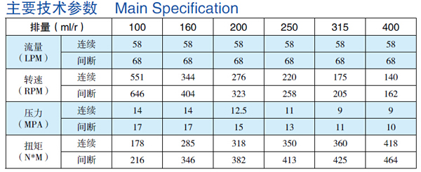 特點(diǎn) BM3馬達(dá)是帶有軸承支撐的軸配流馬達(dá)。其點(diǎn): ·雙軸承支撐,可承受加大的徑向力。 ·采用鑲針齒定轉(zhuǎn)子副設(shè)計(jì),啟動(dòng)壓力低,效率較高,保持性好。 ·可靠的軸密封設(shè)計(jì),承受背壓高,可以串并聯(lián)使用。 ·正反轉(zhuǎn)換向方便、轉(zhuǎn)速平穩(wěn)。 ·聯(lián)動(dòng)軸特殊設(shè)計(jì),馬達(dá)使用壽命長(zhǎng)。 ·馬達(dá)結(jié)構(gòu)緊湊,安裝方便。 ![]() 說明: 1.*大連續(xù)值:馬達(dá)可以連續(xù)工作的*大值。 2.間斷值:允許馬達(dá)一分鐘內(nèi)持續(xù)6秒的*大值。 3.避免在同時(shí)*大速和*高壓力的工況下使用。 4.馬達(dá)的*佳工況范圍:1/3~2/3連續(xù)工作工況。 |